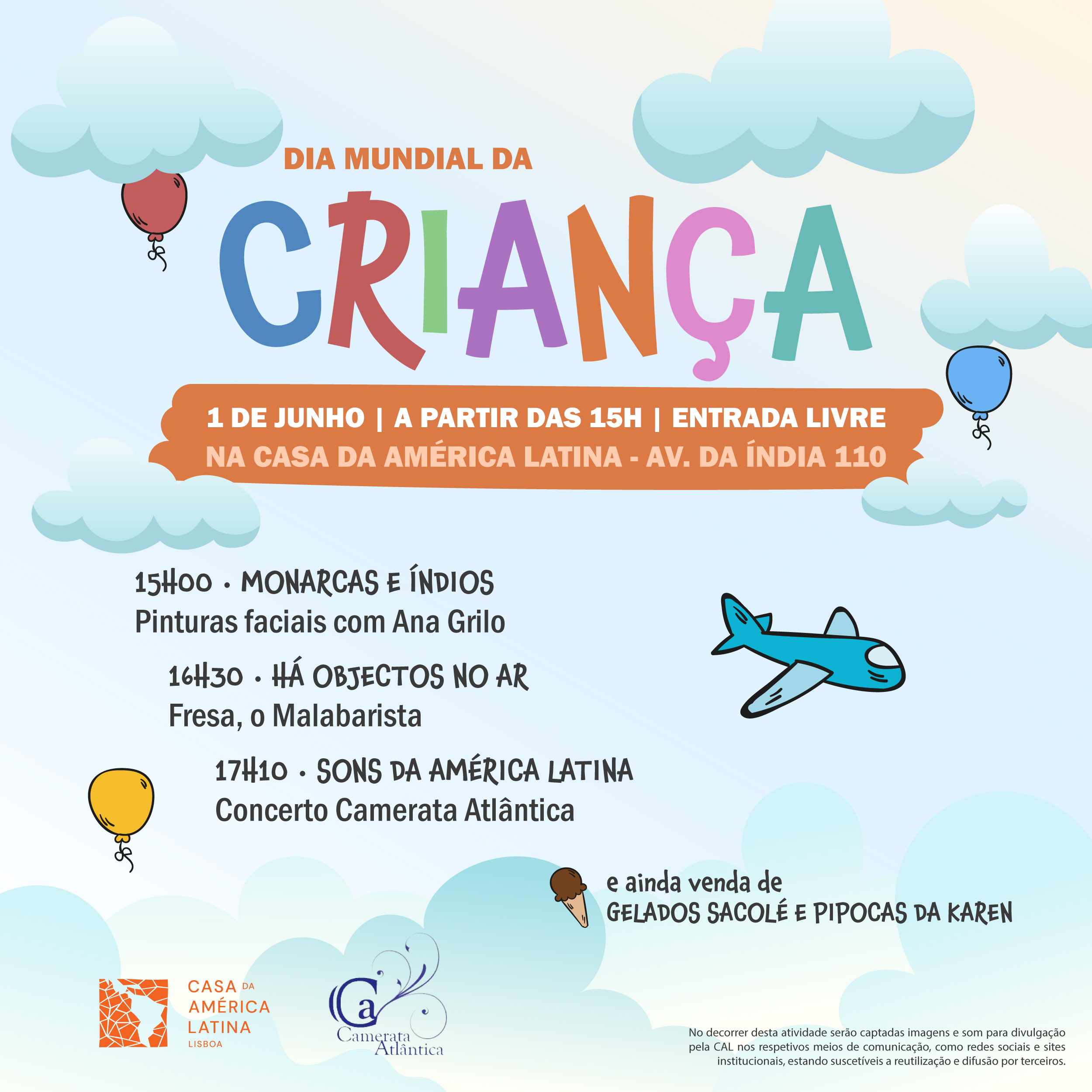 Teremos um programa especial para os mais pequenos, com pinturas faciais, malabarismo e música da América Latina, gelados e pipocas!