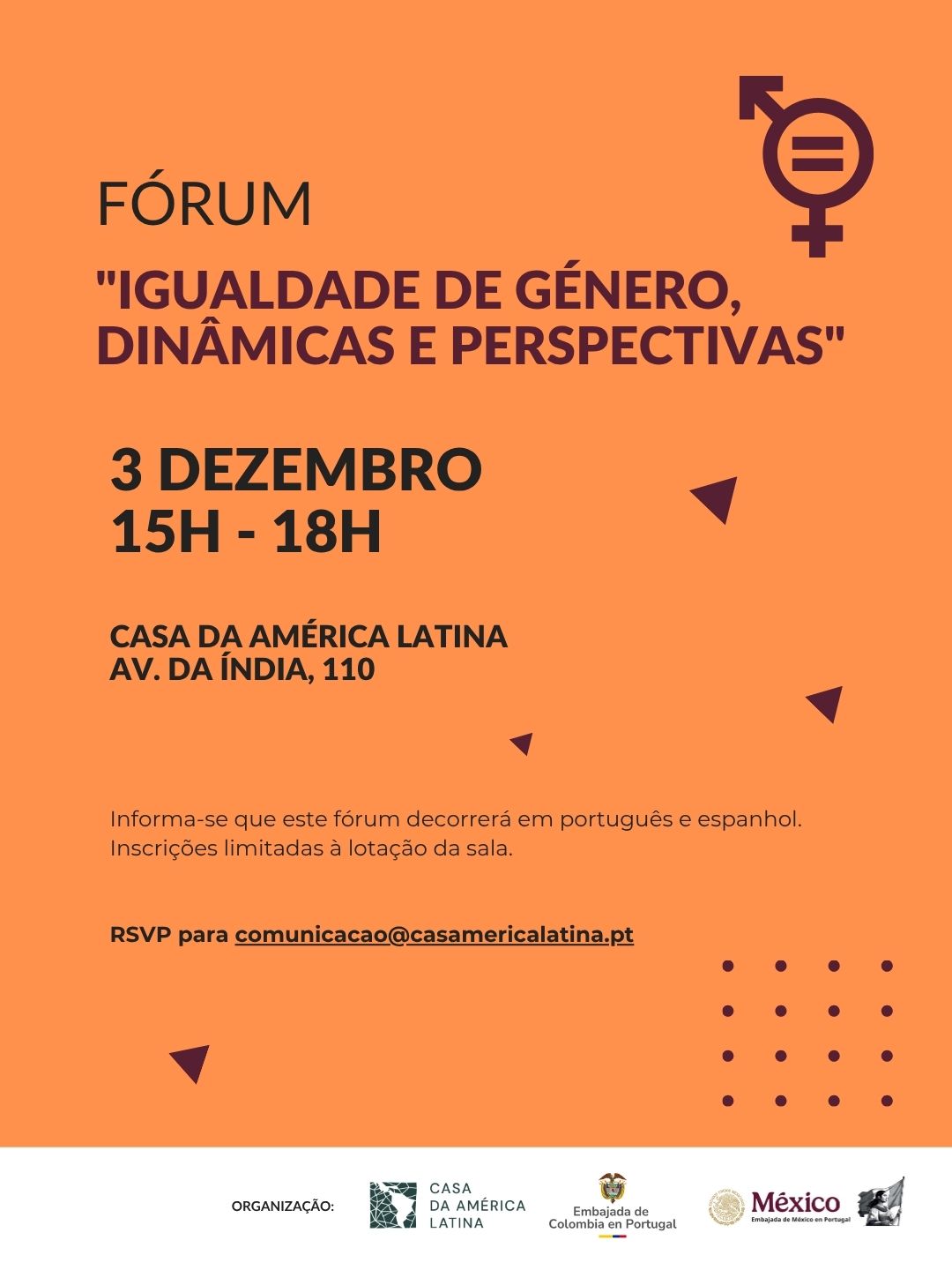 Trata-se de uma iniciativa conjunta das Embaixadas da Colômbia, México em Portugal e Casa da América Latina, inserindo-se no quadro do Dia Internacional para a Eliminação da Violência contra a Mulher, assinalado a 25 de novembro. Pretende-se através do debate, centrado em três eixos (dinâmicas de poder e acesso a cargos de decisão; violência de género como desafio global e avanços normativos e institucionais), aumentar a sensibilização social sobre estas questões, elaborar recomendações para fortalecer políticas públicas e mecanismos de prevenção e estabelecer redes de cooperação entre entidades governamentais, sociedade civil e organismos internacionais.