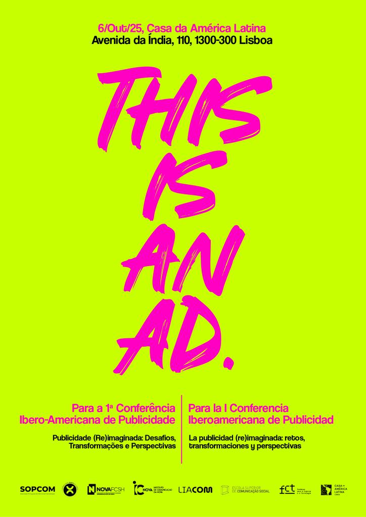 A 6 de outubro, a Casa da América Latina recebe e apoia a 1ª Conferência Ibero-americana de Publicidade, organizada pelo Grupo de Comunicação Estratégica do Instituto de Comunicação da Universidade NOVA de Lisboa. This is it!