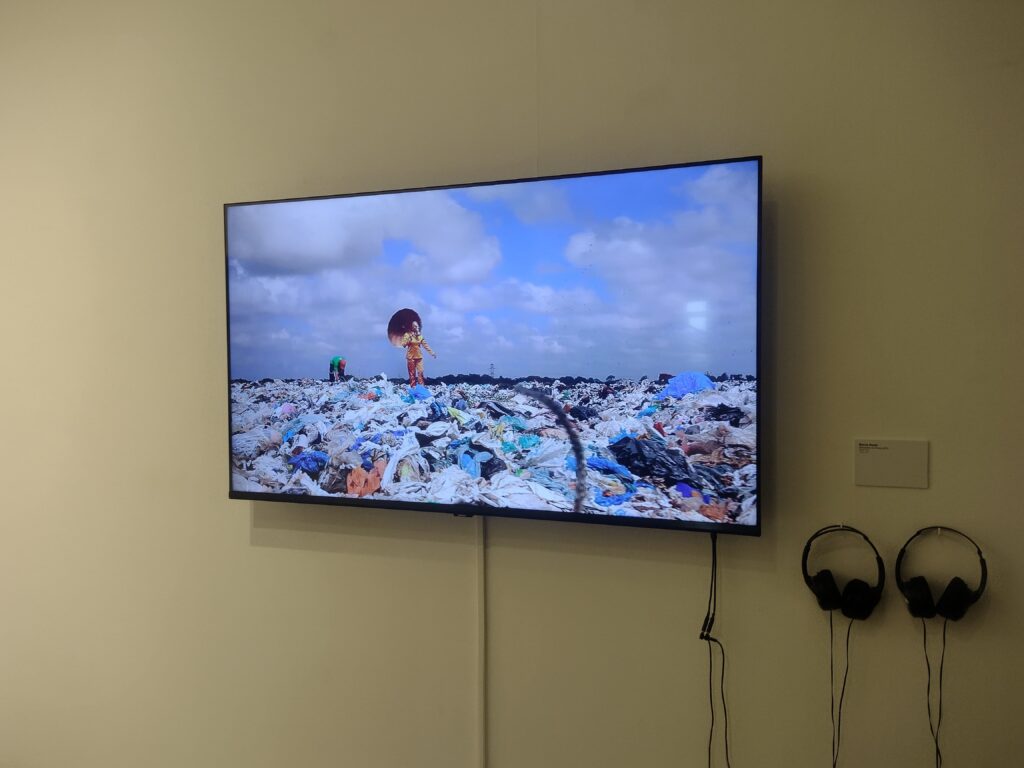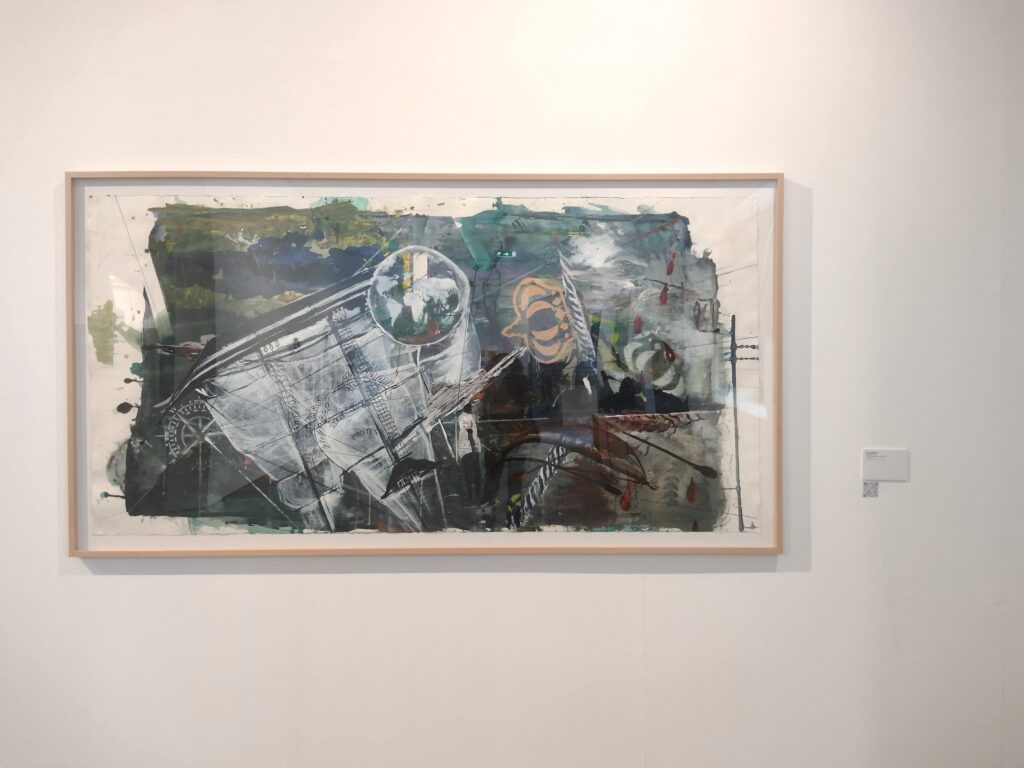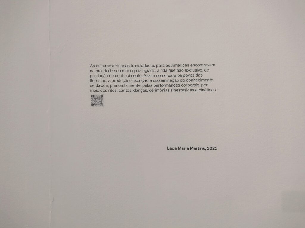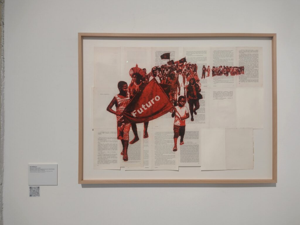 Segue-se a pintura igualmente impactante de Arjan Martins, uma das várias obras que dedicou à questão da diáspora africana no Brasil colonial, numa mistura de caravelas, bússolas, globos e outros símbolos das viagens atlânticas. As temáticas do colonialismo, identidade e memória estão fortemente presentes ao longo de todo o percurso, nomeadamente nas obras de Denilson Baniwa e Uýra, dois outros artistas indígenas, e de Gê Viana, Alice Miceli e Hal Wildson, cuja “Marcha do Futuro” sobrepõe gravuras às páginas de vários livros sobre a Amazónia.