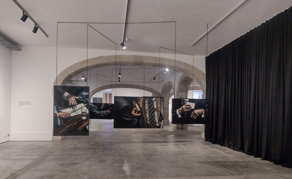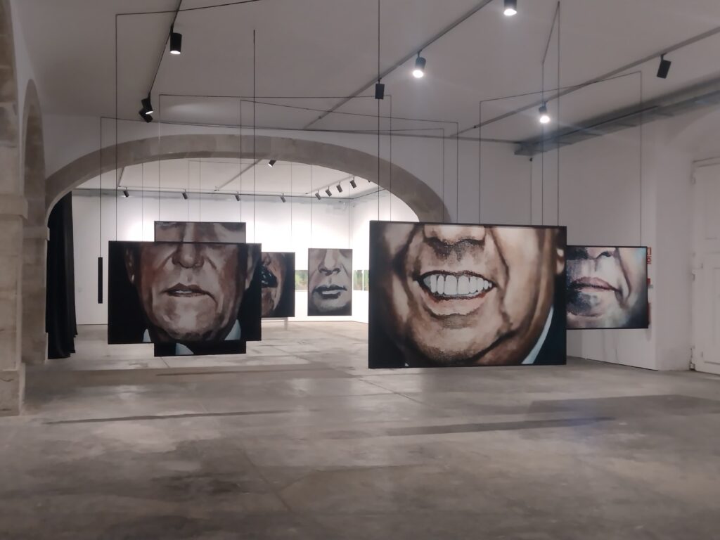 Outra obra que merece destaque é a instalação “A máscara, o gesto, e o papel” de Sofia Borges, uma série de retratos de membros do senado brasileiro tirados pela autora em 2017, após o impeachment à presidente Dilma Rouseff, que revelam, nos sorrisos cínicos e gestos ensaiados, um “teatro da política envergonhada de si mesma”.