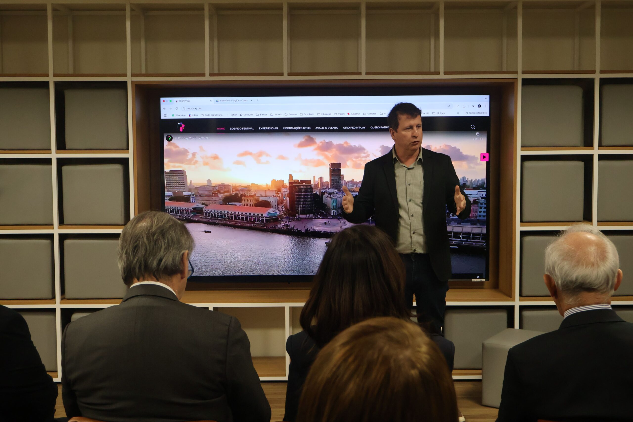 Já em Aveiro, no hub Tecnológico Porto Digital Europa – primeiro ecossistema brasileiro de tecnologia na Europa – o Presidente do Porto Digital Brasil, Pierre Lucena e o Diretor do Porto Digital Europa, João Barbosa apresentaram a estratégia global desse ecossistema de inovação, exprimindo uma vontade de abrir caminhos conjuntos com os países da América Latina presentes, ou seja, Chile, Colômbia, El Salvador, México, Panamá, Paraguai, Peru, Republica Dominicana e também com a Casa da América Latina. “A verdade é que as empresas latino-americanas atuando juntas, saem reforçadas no processo de internacionalização para a Europa” referiu João Barbosa, apoiado pelos testemunhos de Renato Marques e Alexandre Palaoleschi, Agência de Performance e Lançamentos e KYMO Tranquility, respetivamente, duas empresas instaladas no Porto Digital Europa.