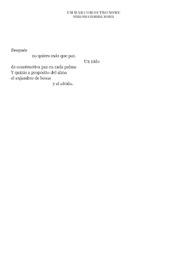 UM MAR COM OUTRO NOME POEMAS PARA O DIA MUNDIAL DA POESIA Después no quiero más que paz. Un nido de constructiva paz en cada palma Y quizás a propósito del alma el enjambre de besos y el olvido.
